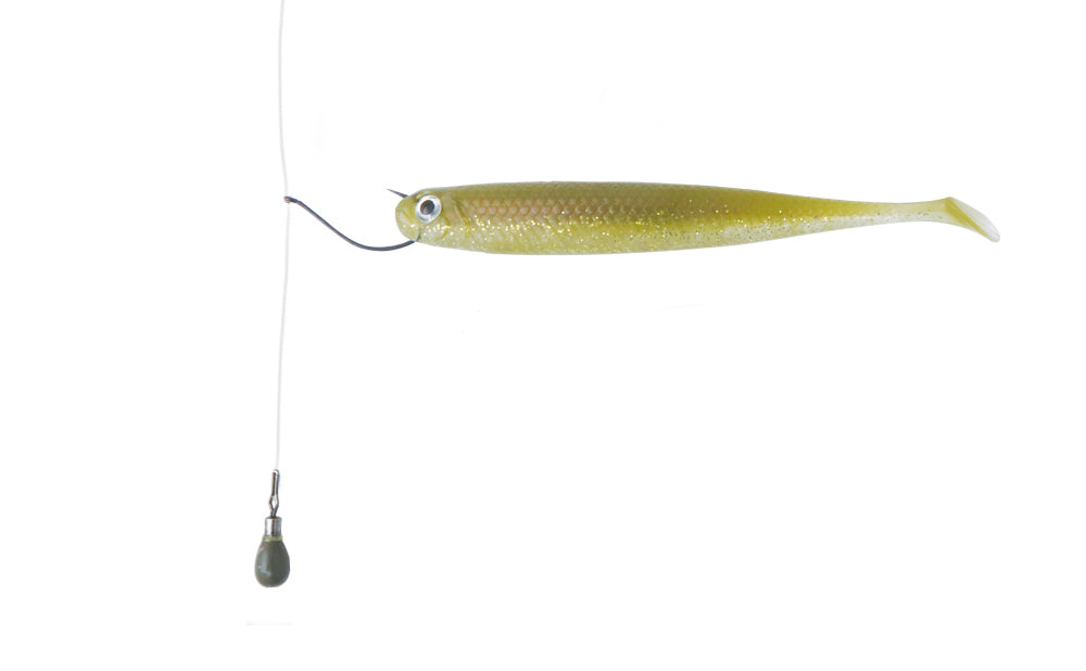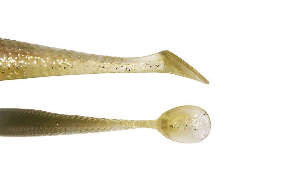 Smala, små shadtail-beten reagerar snabbt på skakningar och rör svansarna fram och tillbaka samtidigt som den styva sidan rör vattnet och imiterar de vågor som svansen skapar. Shadtail-betets motstånd hjälper också till att minska rörelseavståndet vid midstrolling eller hoverstrolling. Under fallet rullar den med hög frekvens och skapar intrycket av småfisk som trycks mot botten.
