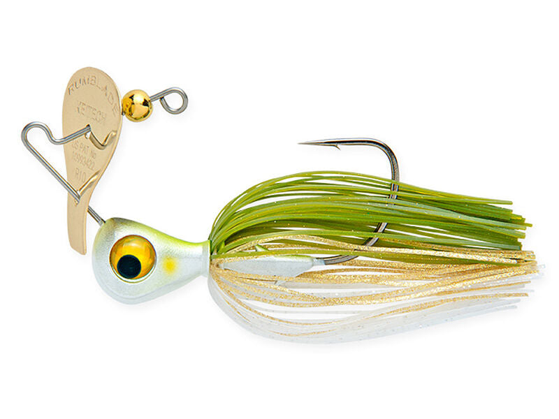 Rumblade Jigs är bladed jigs utvecklade av KEITECH, där bladet är fäst vid jiggen med en tråd – liknande en spinnerbait. Detta har flera fördelar. För det första agerar bladet så snart det kommer i kontakt med vatten, eftersom tråden håller det i optimal position och beten kan provoceras även på små ytor. Den fasta rörelseomfånget hos bladet möjliggör också en mycket snabb betespresentation utan att jiggen tippar över. En annan fördel med tråden är att Rumblade jigs glider nästan utan att fastna över hinder, så de kan fiskas som spinnerbaits i vattenområden med mycket hinder. Efter kastet tumlar Rumblade Jig förföriskt mot botten på grund av det stela bladet och beten är möjliga när som helst. Dessutom överför den speciella bladfästningen rörelsen till hela betet, så att Rumblade Jigs inklusive kjol och trailer fungerar mycket bra. Med bladjigs är ljudet som bladet ger när det träffar jiggen också mycket viktigt för deras förmåga att fånga fisk. KEITECH har valt en design som gör att bladet slår mot jigghuvudet och mässingspärlan som är fäst vid tråden. Rumblade-jigs är dessutom utrustade med högkvalitativa silikonkjolar, en matchande hållare för trailers och krokar med en stor böj speciellt tillverkad av DECOY. Slimma 4“ - 5” mjukbeten (10 - 12,5 cm), kräftor eller swimbaits passar mycket bra som trailers för att locka stora abborrar, gäddor och självklart även gös på kroken!