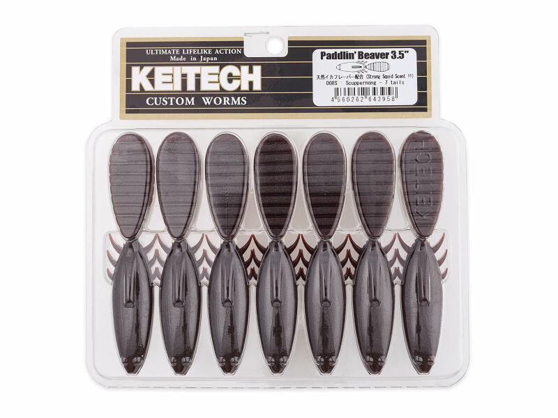 KEITECHs 3,5" Paddlin Beaver är ett speciellt Creature Bait med en massiv bäverstjärt. Stjärten är något tyngre än kroppen, vilket ger bra kastprestanda. Ytan är räfflad och anslutningen till kroppen är något uppåt förskjuten, vilket ger fantastisk rörelse i alla riktningar. Kroppen på 3,5" Paddlin Beaver är utrustad med små ben samt praktiska urtag för kroken. Den breda kroppsmformen möjliggör en fin glidning vid sänkning. 3,5" Paddlin Beaver är saltad på ena halvan och inte saltad på den andra för att få den perfekta gången. Den är smaksatt och mycket mångsidig att fiska med. Ett fantastiskt mjukbete för abborre, gädda och gös!