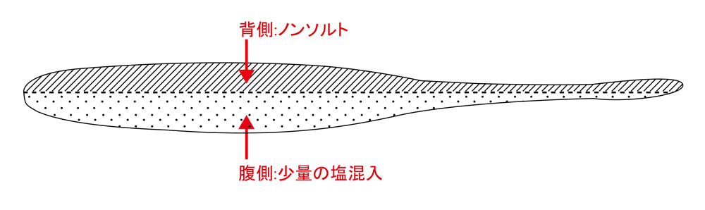 Ovansidan är utan salt, medan bukdelen har en liten mängd salt blandad i materialet.
