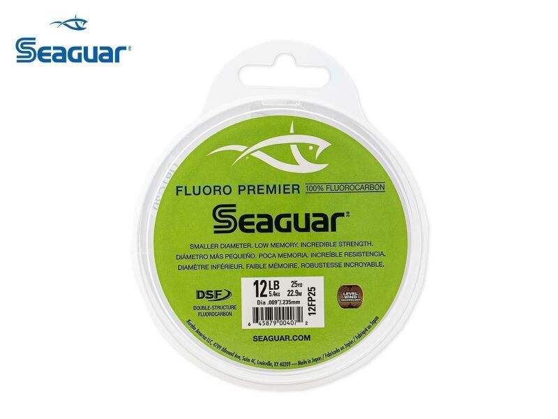 Den mest avancerade SEAGUAR-ledaren, Fluoro Premier, har 42 % högre knutstyrka än ledande fluorcarbonkonkurrenter. Utvecklad med Seaguars exklusiva, proprietära Double Structure Technology, leder Fluoro Premier Leader marknaden inom innovation. Fluoro Premier har mindre diametrar och ökad styrka jämfört med våra FC- och Red Label-varumärkesledare. Fluoro Premier erbjuder otrolig knut- och dragstyrka och är en extremt mjuk lina med låg minnesförmåga. Perfekt för alla ledarfiske från 12 till 80 lbs., både i färskt och salt vatten. Precis som med alla 100 % fluorcarbonprodukter är Fluoro Premier Leader mycket mindre synlig under vatten än monofilament och praktiskt taget osynlig för fisk. Fluoro Premier är också UV-beständig, kemikaliebeständig, absorberar inte vatten, högdensitet och tål kalla förhållanden. Tillverkad av 100 % Seaguar-hartser och producerad med vår proprietära extruderingsprocess.
